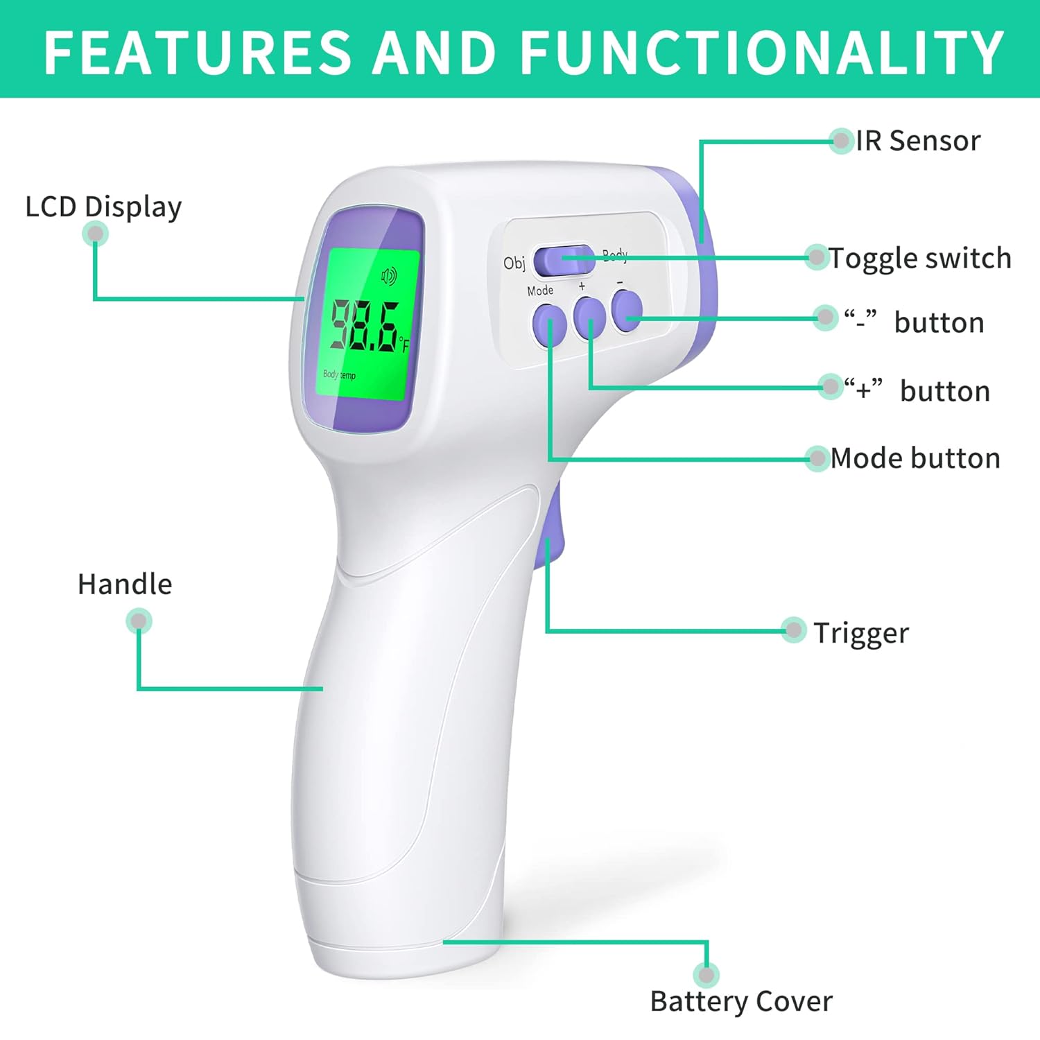 -Multifuncional: Ideal para medir la temperatura corporal, de objetos, líquidos y habitaciones.